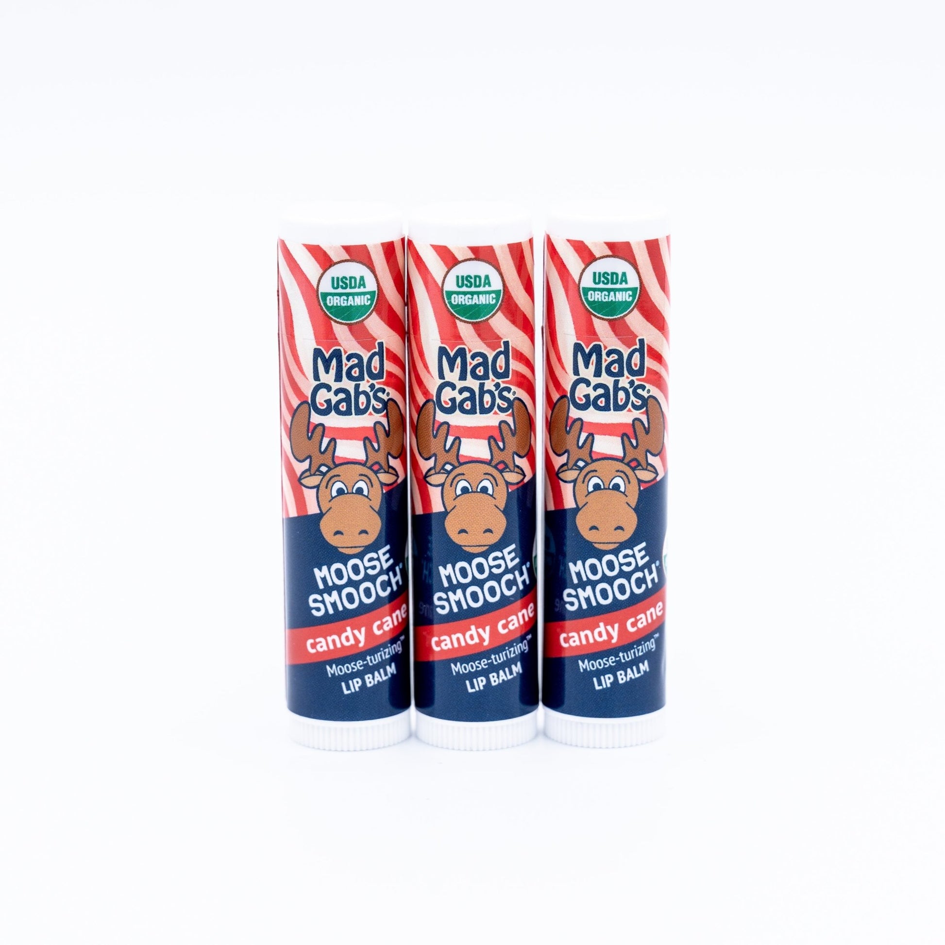 3 Pack Includes: 3 Candy Cane Moose Smooch Lip Balms